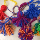 De trenzados, pompones y borlas es un taller práctico en que se conocerá la cultura detrás de los conocidos pompones coloridos, borlas y trenzados, ampliamente utilizados en el norte de nuestro país y el altiplano. Se realizarán pompones y borlas de variados tamaños y colores, además de diferentes tipos de trenzado, que servirán para colgar y unir los pompones y las borlas. Los materiales para esta actividad son: lanas de colores y tijeras.