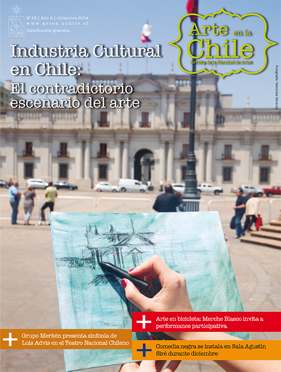 Ya está disponible el nº13 de la revista Arte en la Chile. En este ejemplar encontrarás el reportaje central ¿Existe Industria Cultural en Chile?, donde los Fondos de Cultura del Consejo Nacional de la Cultura y las Artes se esfuerzan por impulsar este concepto. También podrás enterarte sobre los inicios y misiones del Museo de Arte Popular Tomás Lago en medio de las celebraciones de su cumpleaños número 70.