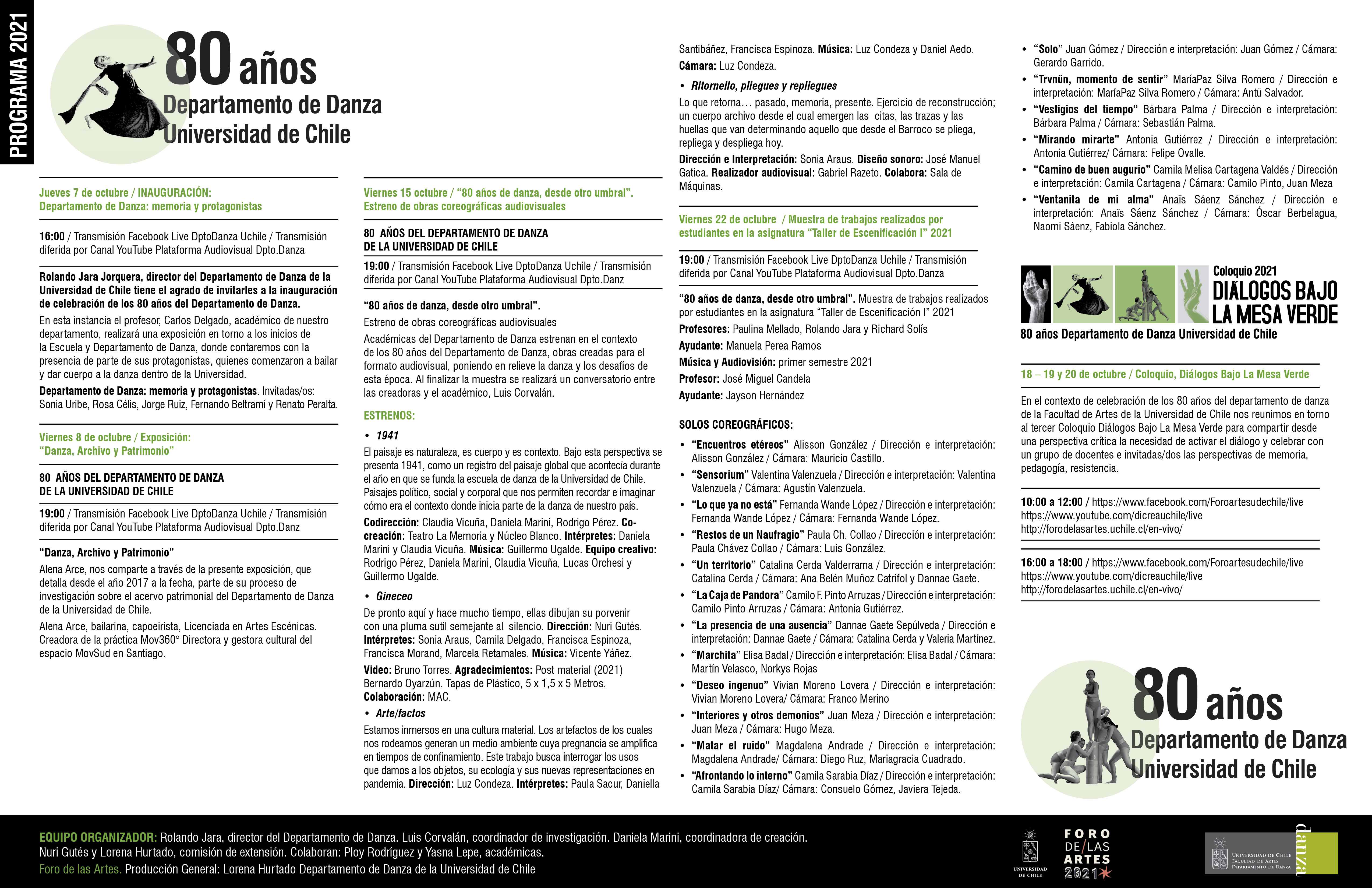 El programa de todas las actividades que se realizarán en el marco de los 80 años del Departamento de Danza está disponible para su descarga en documentos adjuntos.
