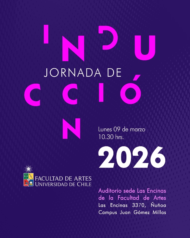 El lunes 9 de marzo, a las 10:30 horas, se realizará en el Auditorio de la sede Las Encinas de la Facultad de Artes la actividad de bienvenida a la nueva generación de estudiantes que este 2026 inicia sus estudios de pregrado en la Facultad de Artes de la Universidad de Chile.