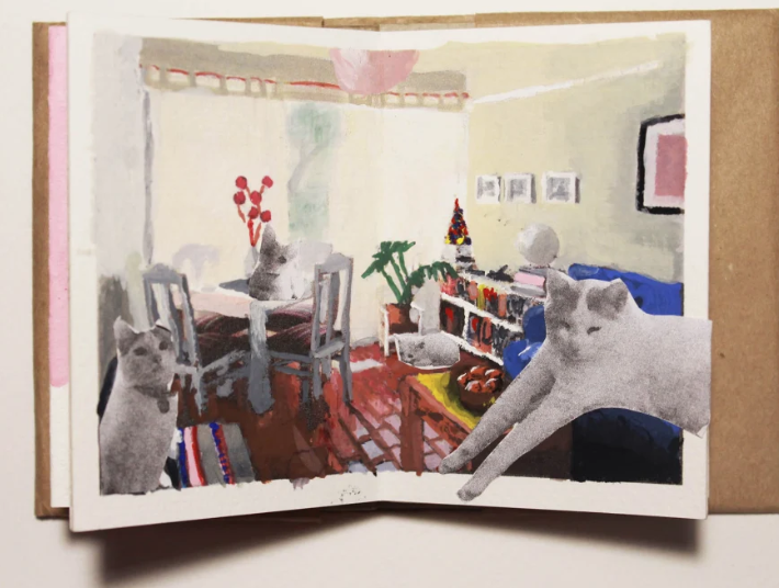 A través de cinco libros-objeto de pequeño formato en los que mezcla texto, dibujo, pintura y fotocopia de archivo fotográfico, la Doctora en Historia y Teoría de las Artes de la Universidad de Buenos Aires, presenta relatos localizados de uno o varios de los lugares donde ha vivido. “Se elaboran recuerdos, momentos, contextos políticos y sociales que, como siempre pasa con la memoria personal, tienen también mucho de ficción”, señaló.