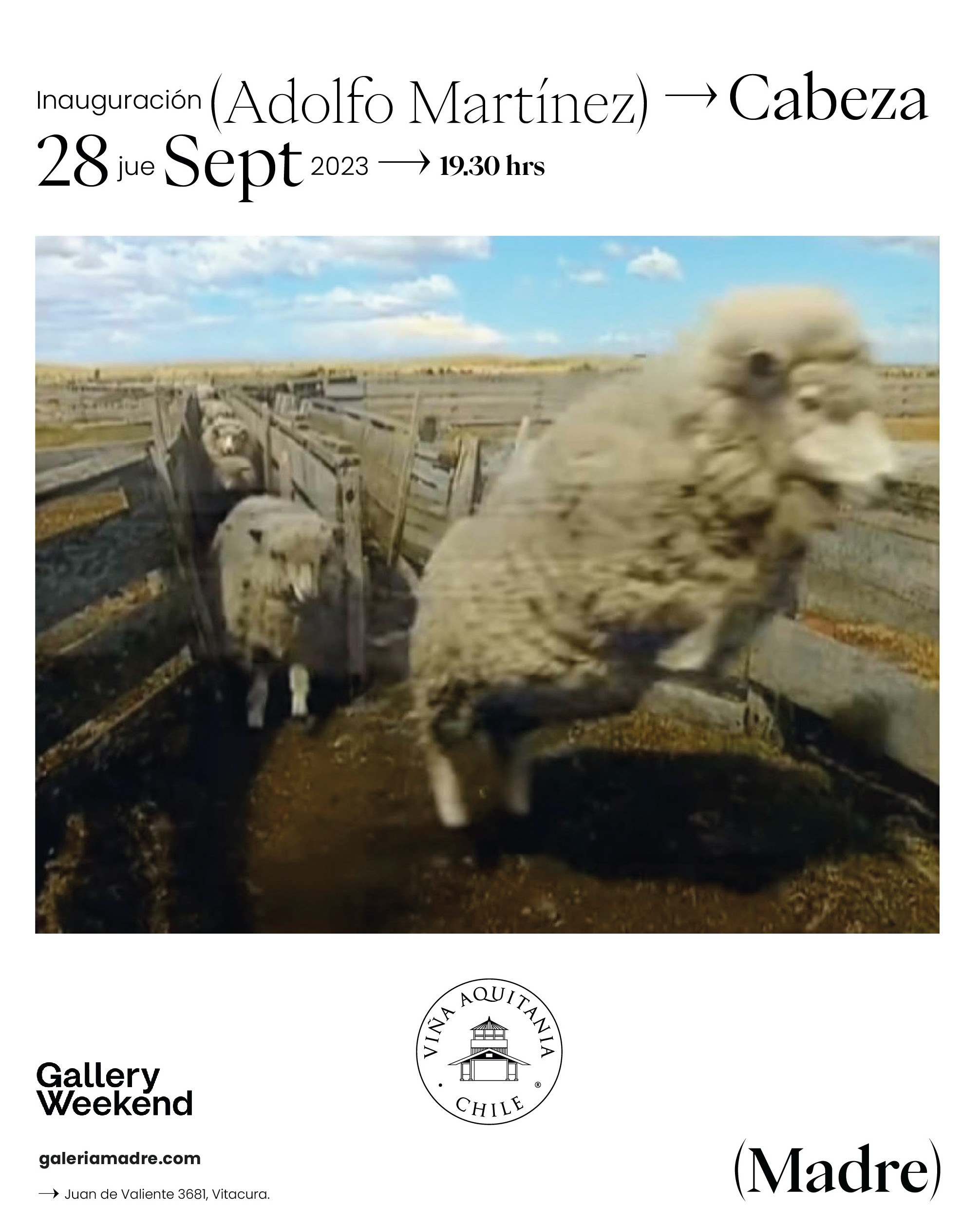 “CABEZA” de Adolfo Martínez podrá ser visitada hasta el 28 de octubre en Galería Madre, ubicada en Juan de Valiente 3681, Vitacura. La entrada es libertad y los horarios de visita son de lunes a viernes de 10:00 - 14:00 y 16:00 - 19:30 sábados de 11:00 - 14:00