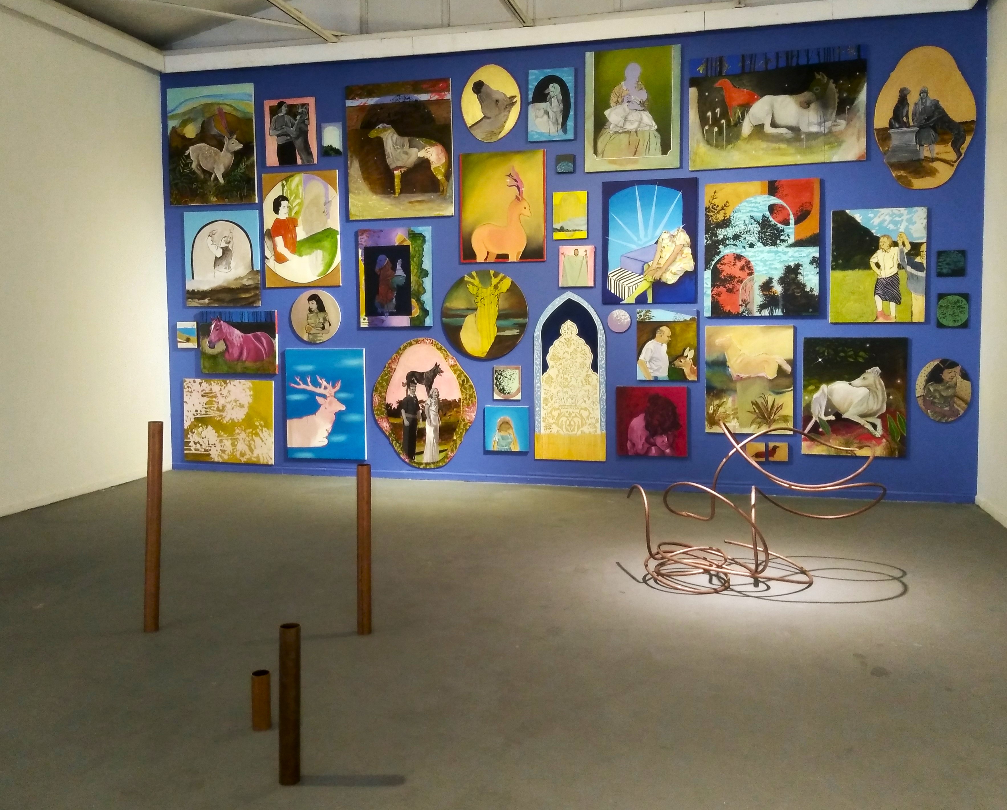 En el segundo período de esta muestra, se presentó Señuelos falsos de la estudiante Luz María Fernández, un trabajo visual que se desarrolló desde la práctica de la pintura, con el cual abordó un pequeño universo. “Mi intención fue armar diferentes narrativas a partir de una serie de pinturas que, si bien, no tienen una relación directa, pero logran vincularse gracias a una yuxtaposición, su paleta de colores o el tratamiento pictórico”, contó. Estas piezas pictóricas compartieron espacio con el proyecto El partido de Chile, de Juan Camilo Mutis, en el que el artista propuso un cuerpo de obra que busca reinterpretar nociones idiosincráticas, históricas y políticas del país a través del fútbol. “En este ejercicio, se explora la amplitud de este deporte como manifestación social y el eco que emana de su fuerza. En este proceso, se revelan conexiones y se teje un tapiz que va más allá de las narrativas convencionales”, expresó.