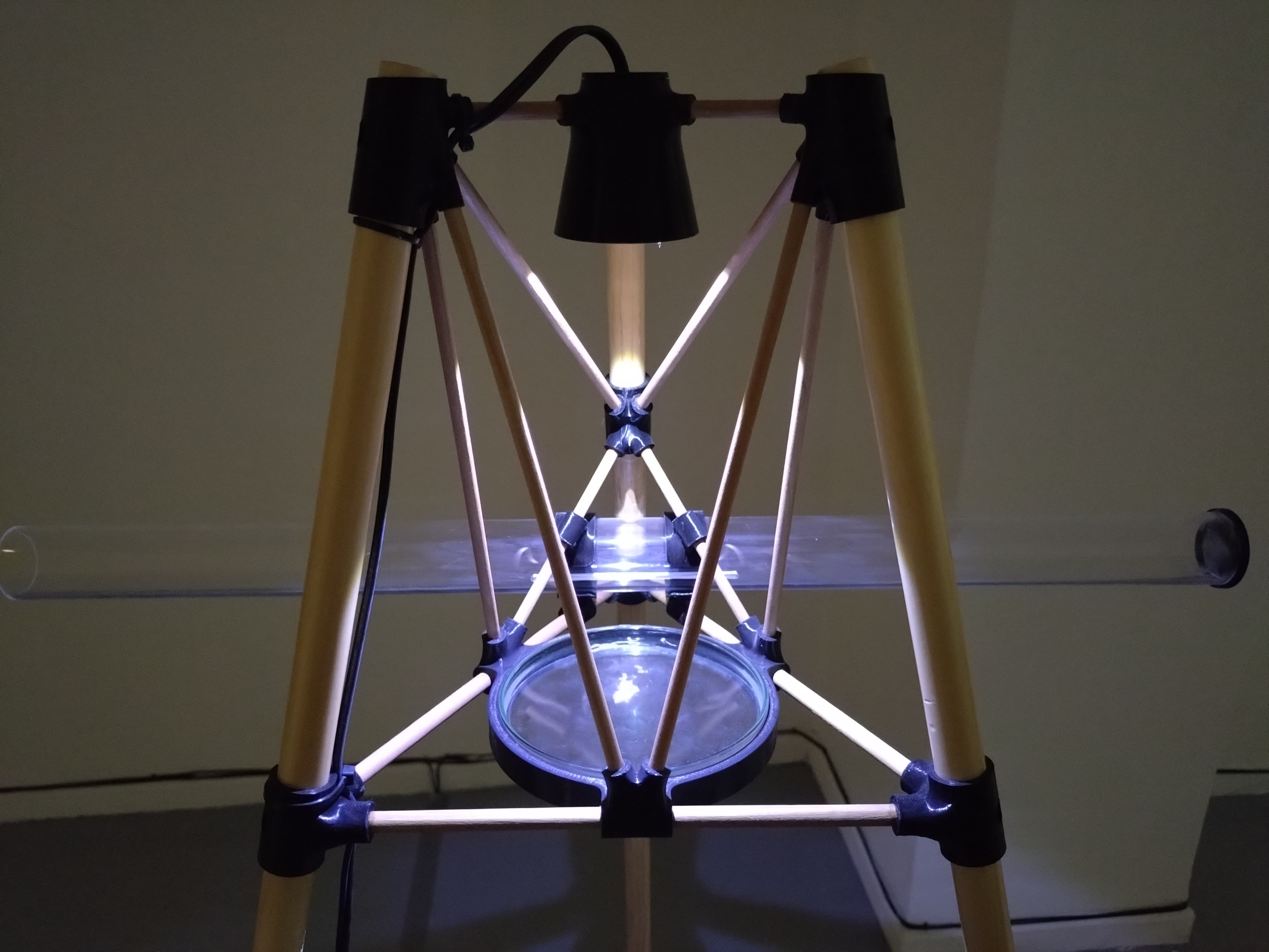 Por otra parte, la instalación del egresado Cristóbal Caro, titulada Memoria del paisaje de Concepción / Tiempo, escalas y vestigios, consiste en una propuesta en la que a través de un recorrido y un mapeo que hace de su territorio, en la ciudad de Concepción, junto a una flauta se desplaza buscando flujos de viento que hacen silbar este instrumento. “El movimiento ondulatorio del agua, sincronizado con el sonido, crea un espectáculo visual y sonoro. La contraposición entre la precisión tecnológica de los moldes y los trípodes, y la fragilidad de la tierra modelada, establece una relación entre pasado y presente”, explica el artista, agregando que, a través de esta dualidad, la obra propone una reinterpretación del paisaje, invitando al espectador a reflexionar sobre la transformación del territorio y la memoria contenida en él.