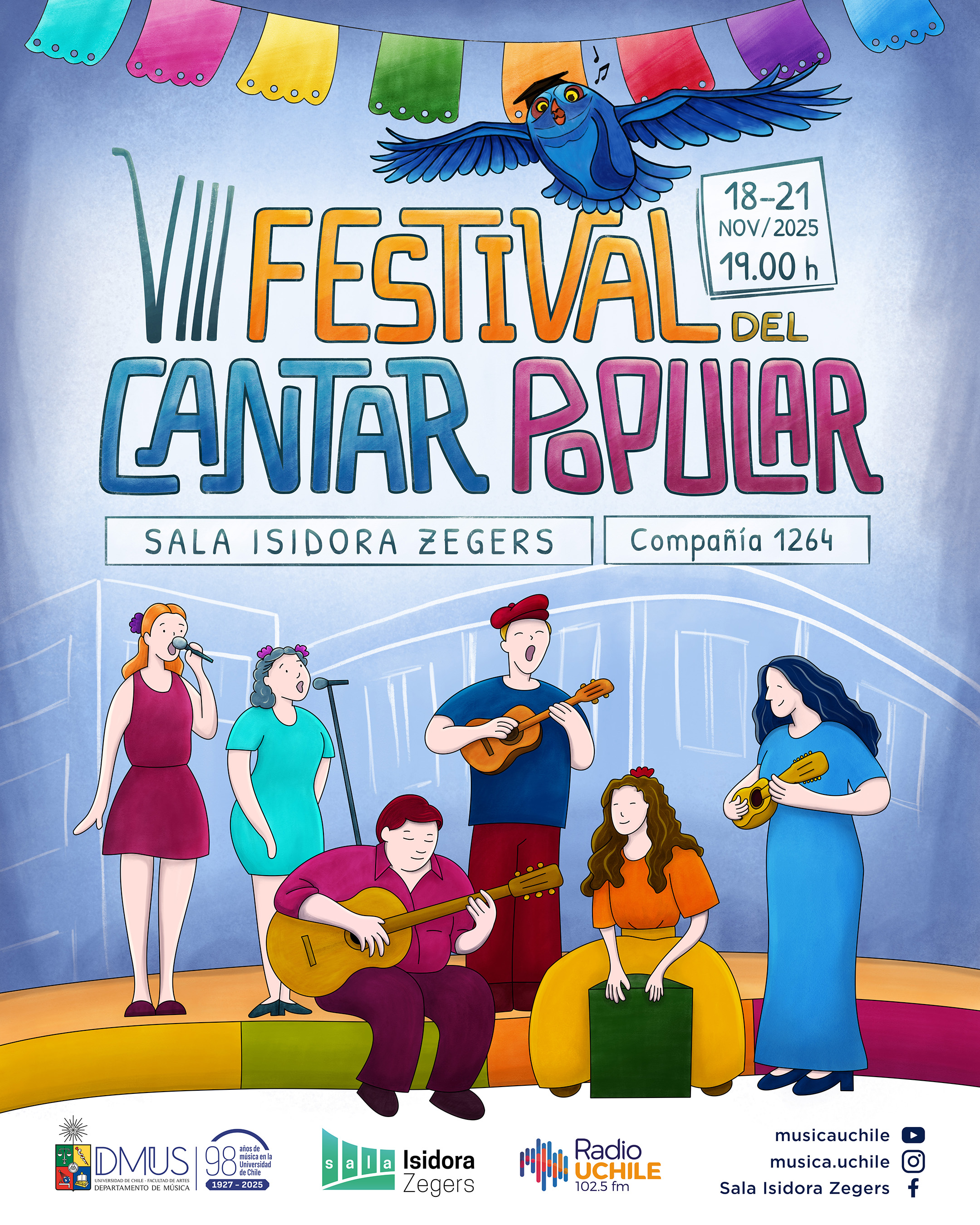 Del martes 17 al viernes 21 de noviembre se realizará en Sala Isidora Zegers el octavo Festival del Cantar Popular de la Universidad de Chile, que tendrá en esta ocasión el eje puesto en proyectos musicales populares de carácter formativo.