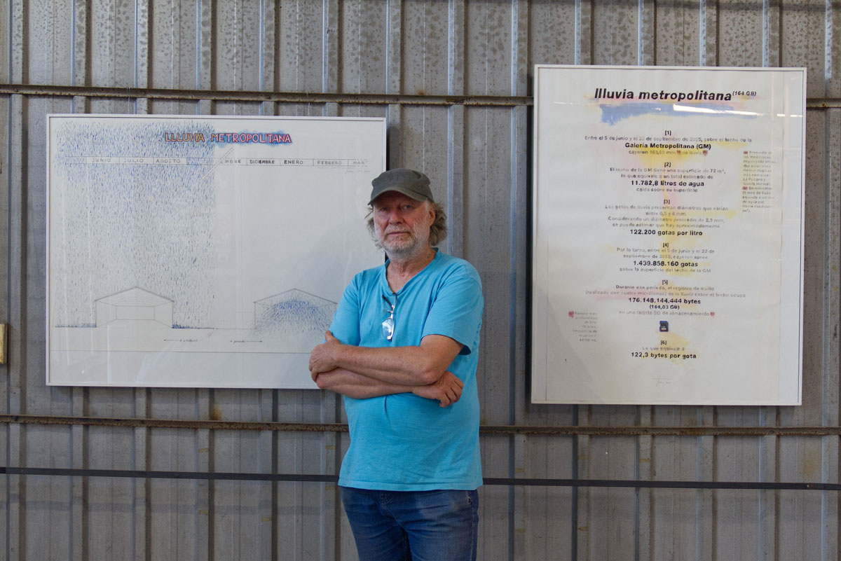En pleno apogeo del verano santiaguino, una experiencia inmersiva propone un quiebre sensorial en la Galería Metropolitana. Se trata de Llluvia Metropolitana, una muestra de arte sonoro y visual creada por los artistas, el prof. Rainer Krause y Matías Serrano del Departamento de Artes de la Facultad de Artes de la Universidad de Chile, e integrantes del Núcleo de Artes Sonoras (NAS). La exposición, que permanecerá abierta hasta el viernes 30 de enero de 2026, explora la lluvia como un sistema complejo de relaciones entre tiempo, sonido y materialidad. Esta propuesta emerge de una premisa sonora que busca intencionar la experiencia sensible del espectador con el clima, desplazando un fenómeno invernal hacia la aridez estacional de la capital.