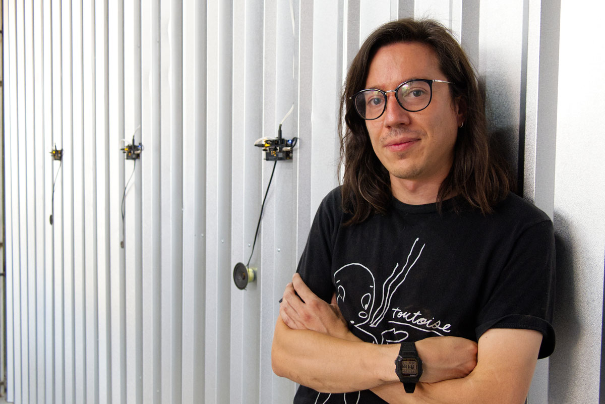 La elección de la Galería Metropolitana fue fundamental, ya que su arquitectura de galpón industrial con paredes de lata funciona como una caja de resonancia que Matías identificó como un material vibrante mientras trabajaba en un montaje previo, en el año 2021: "Mientras instalaba un proyector se sacudía toda la infraestructura, ya que no es tan sólida. Sentí la vibración del techo y de las paredes. Dije: acá hay un material, aquí hay algo interesante. Las estructuras que parecen rígidas, que son las que nos contienen, en realidad son más flexibles".