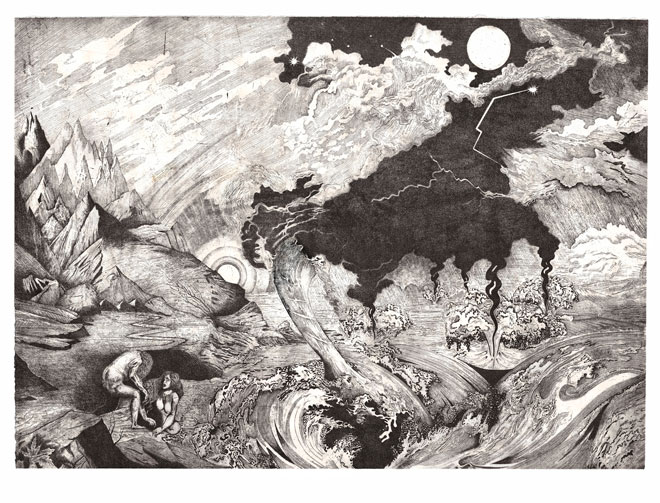 Ximena Medina Sancho, egresada y titulada de la Facultad de Artes como Licenciada en Artes Plásticas con mención en Pintura, presenta Nevados de Putre II, una xilografía de 65 x 100 cm que condensa una investigación visual sobre la herencia cultural y la geografía del extremo norte de Chile.