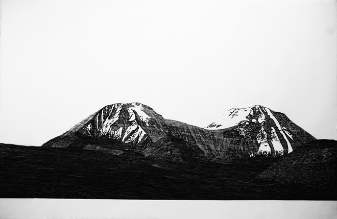 "Esta obra representa el vínculo permanente que tengo con el paisaje del extremo norte chileno, herencia cultural andina de mi padre. A través de este trabajo quise resaltar la majestuosidad imponente de estos volcanes, también llamados Nevados de Putre, ubicados en la precordillera de Los Andes Centrales", explica la artista.